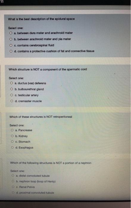 Solved N What Is The Best Description Of The Epidural Space Chegg Com
